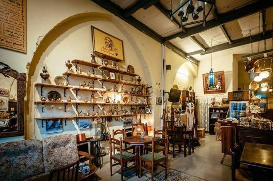 The interior of Basma’s Coffee in Jaffa, a charming place with a collection of finjans and Arabic/Turkish coffee pots. (pic: TripAdvisor)