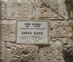 Plaque in the Old City recognizing South African Jewry’s generosity in restoring Jaffa Gate.