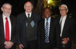 Toasting SA-Israel Ties. Rabbi Michael Melchior, Adv. Hertzel Katz, Ambassador Sisa Ngombane and retired SA judge, Henry Shakenovsky.