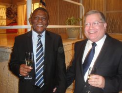 Toasting Tomorrow. Hand in hand, Ambassador Sisa Ngombane (left) and Israel’s Deputy Director General (Africa) of the Foreign Ministry Yoram Elfron, following inspiring speeches of future cooperation.