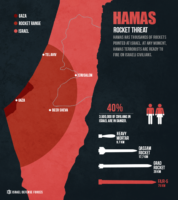 An Infographic of the range and threat that Hamas represents and carries out routinely against Israel.