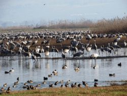 The lake covers an area of one square kilometer, interspersed with islands that serve as protected bird nesting sites. It is also the stopover point for tens of thousands of cranes migrating from Finland to Ethiopia every winter. The Agamon supports over 250 species of birds including large waterfowl concentrations and provides excellent opportunities for viewing raptors such as Greater Spotted and Eastern Imperial Eagle.