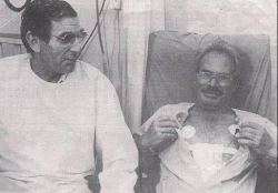 Keeping Abreast. 51-year-old Ovadia Matzri displays his chest after a heart transplant in 1987 while his surgeon, Prof. Joe Borman looks on.