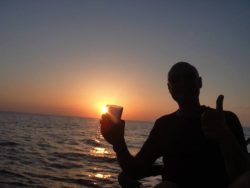 With Jonny behind the wheel, Katharina hurrying from portside to starboard, unfurling the main sail followed by the foresail and with Martin working the winches, it left the rest of us to do the important work of cracking open the beers and getting into the true ‘spirit’ of sailing. When Jonny ordered “prepare to tack”, Mike from Minnesota assumed that meant passing the nuts to go with the beers. Well over a nautical mile off shore, ‘Gone with the Wind’ headed north towards Netanya.