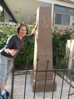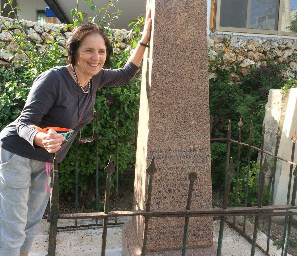 Dr. Gail Loon-Lustig at the tombstone of Thomas Hodgkin in Jaffa