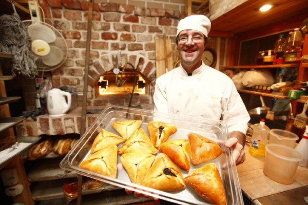 Away from the giants of bread manufactures in Israel, are several boutique bakeries who pride themselves in baking mainly healthy breads. One such is Saidels Bakery – name recently changed to Saidel’s Artisan Baking Institute – located in the village of Ginot Shomron. Nestled in the shade of weeping willows, with the tranquil trickle of a babbling brook to delight the senses, this family bakery is run by husband and wife team, Les and Sheryl Saidel, immigrants from Johannesburg, South Africa. Modelled on the time-honoured family “village bakery”, Saidels is a far cry from the high volume, industrialized operations of modern bakeries. Les, a student of world-renowned pastry chef Michel Suas (San Francisco Baking Institute) and “an artisan bread baker” with over 30 years of baking experience, laments that “our global health is declining and the food we put in our mouths has a lot to do with it.” He refers back to an age where there “were no major bakery chains and no E-something chemical list. Bread was baked in a local village by the baker from scratch.” Furthermore, he continues, “The mills of those early days could not grind the flour too fine so it retained all the components of the wheat grain, including the wheat germ. This was real bread.” All this Saidels proudly emulates. “We mill the whole wheat flour ourselves and use it immediately in the bread dough so no refrigeration of wheat germ is necessary and the wheat germ has no time to go rancid.” As Saidels bake their bread and sell it fresh out of the oven, there is no need for “stabilizers, preservatives and dough enhancers. We are artisan bakers and when we say 100% whole wheat that is exactly what it is – direct from nature, organically grown and no tampering.” Their masonry oven was built by Les himself according to strict guidelines and is one of only two such ovens in the entire Middle East. Constructed with century-old bricks imported from Belgium and with its Tudor-like facade, “our oven is not only the tool of our trade, it is a wonder to behold and attracts tourists and baking enthusiasts from all over the country.” Les says he finds it enriching watching “the flames lick the brick interior of our oven, in the knowledge that our ancestors baked this way and that we are continuing their fine tradition” Les says, “we have shifted our focus and allocate 70% of our time to running workshops across the country instructing in challah, artisan, healthy, French, Italian, Donut and flatbread baking. Once we even did a workshop on a large boat on the Sea of Galilee.” Interesting new additions to the Saidels ‘repertoire’ is Rambam Bread, named after the Middle Ages Jewish philosopher and Rabbi, Maimonides, who advocated a healthy lifestyle and of special interest to their South African customers – Biltong Bread.