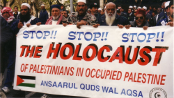 Sowing The Seeds Of Hatred Imans lead this protest of over 20,000 Muslims march early in the new millennium from the Houses of Parliament to Adderley Street in Cape Town suggesting that “the Holocaust” which murdered six million Jews, as now happening to Palestinians. (Photo David E. Kaplan)