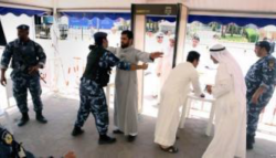 Checking with Security metal detectors at the entrance to a mosque in Kuwait