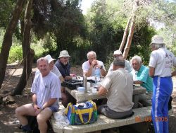A group of seniors – mostly South Africans – take a break on the Israel Trail.