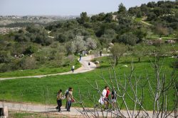 Their son, Nogah Hareuveni, a physicist, dedicated his life to implementing his parents’ dream. To build the park, thousands of tons of soil were trucked in, reservoirs were built to catch runoff rain water, ancient terraces, wine presses and ritual baths were restored, and hundreds of varieties of plants were cultivated. “It started in 1964 with Nogah and we teach what he taught us. Working with the Bible in one hand and a spade in the other – he made the connection between the scriptures and nature.” Noting how Jewish festivities have to do with a certain time of the year and a particular type of fruit, “he planted only those trees and plants that were indigenous in biblical times. He wanted visitors to understand the text of the Bible better by using their senses – seeing, smelling, touching, hearing and tasting.”