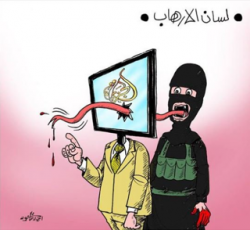 Egyptian cartoon calling Al Jazeera a mouthpiece of Terror