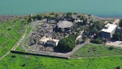 Only two and a half kilometers south of Capernaum located on the north-western shore is Tabgha (known in Hebrew as Ein Sheva). It is believed to be the traditional site of the feeding of the five thousand with five loaves and two fish (marked today by the Church of the Loaves and the Fishes). This narrative may well bring on grumbling stomachs.